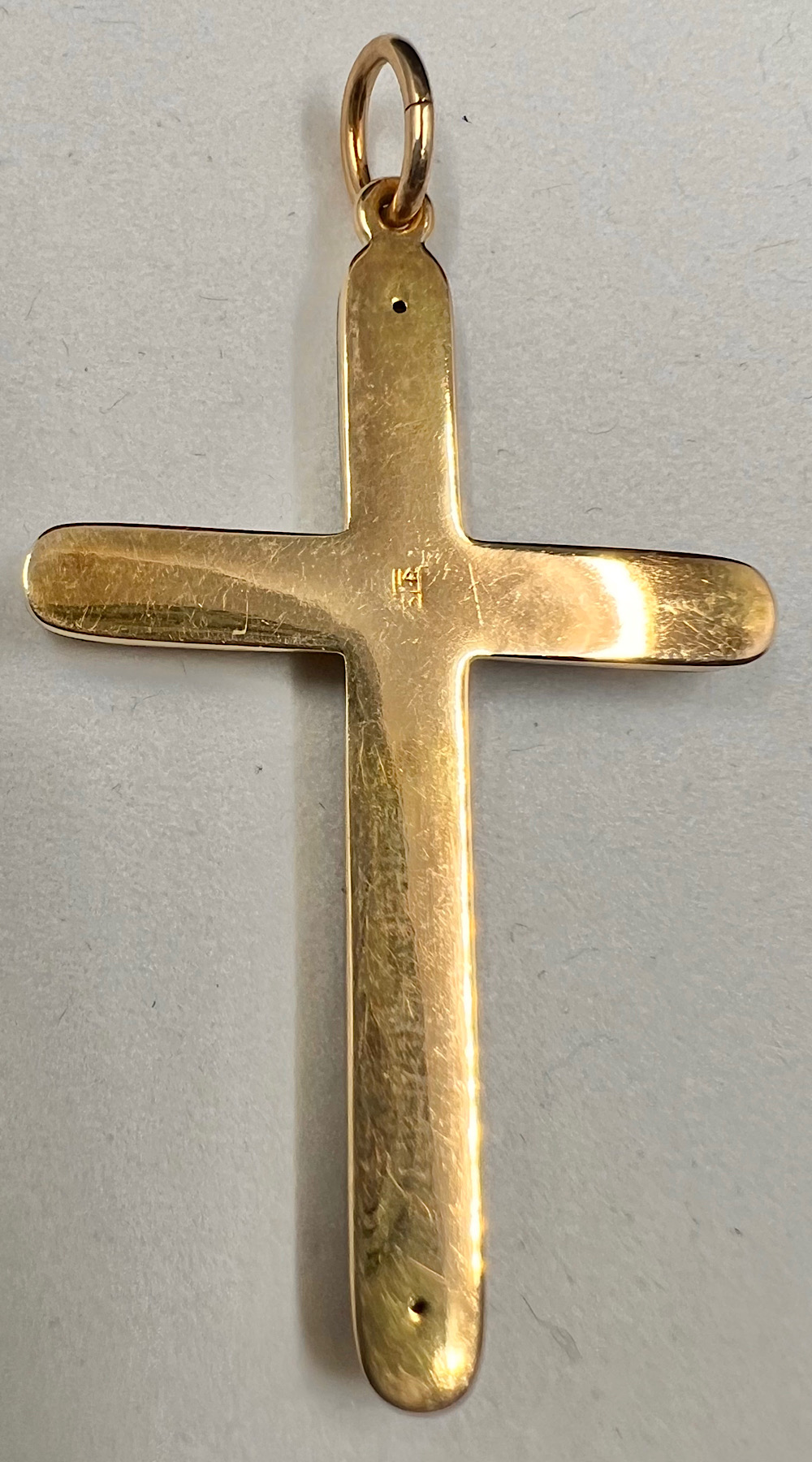 Circa 1880 black enamel and seed pearl 14 carat gold cross.