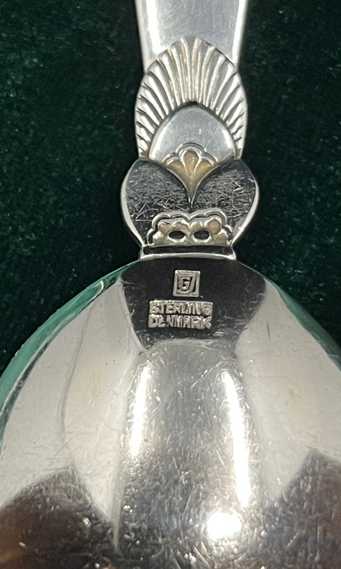 Georg Jensen cactus pattern marmalade spoon, Hallmarked with a GJ with in a rectangle.( 1933- 1944)