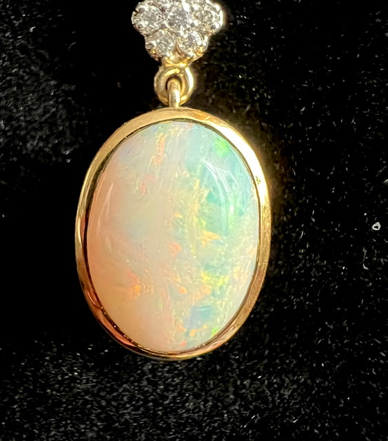 Large oval Australian milk opal and diamond pendant