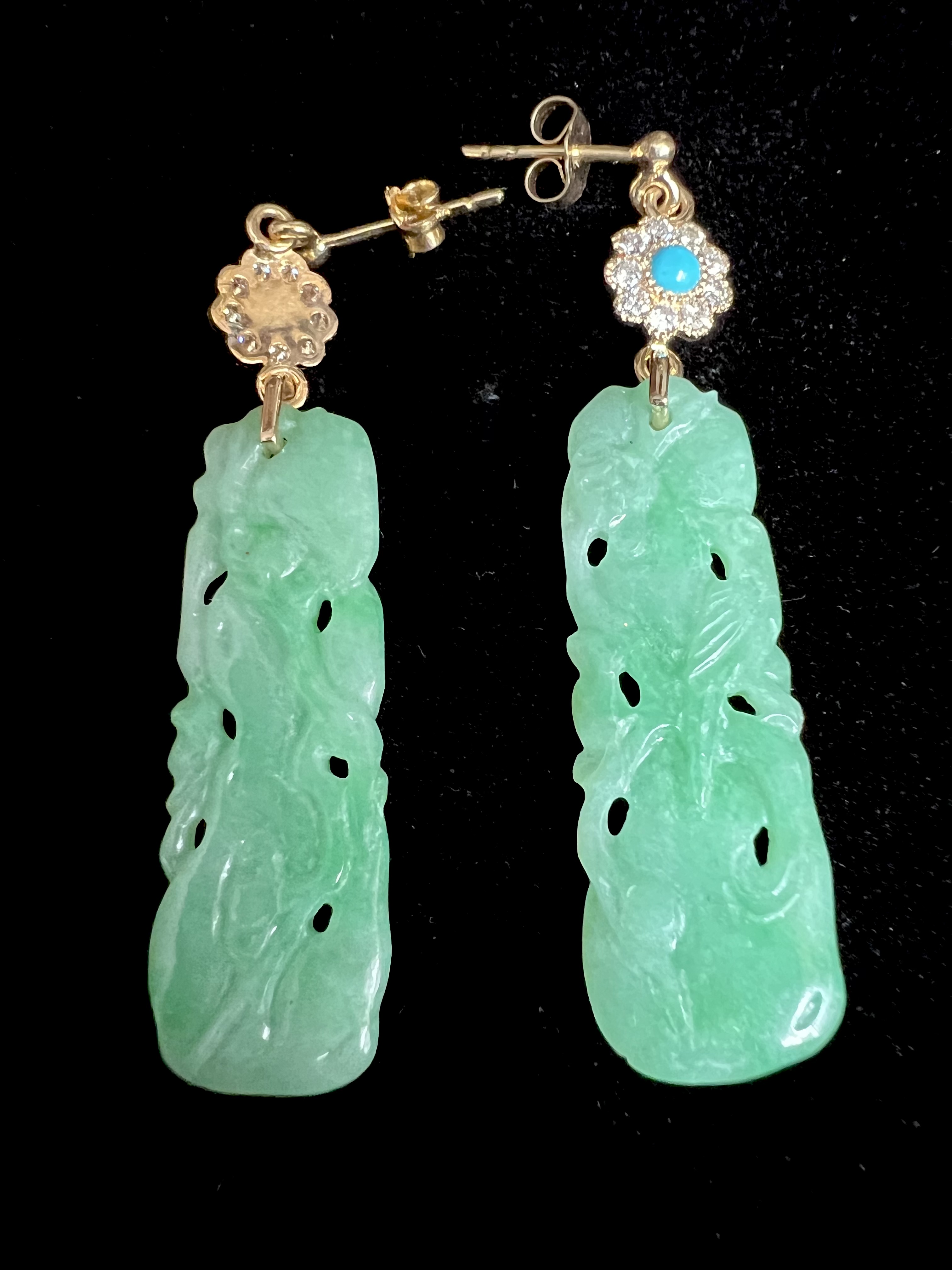 Vintage jade panel, diamond & turquoise drop earrings.( SOLD )